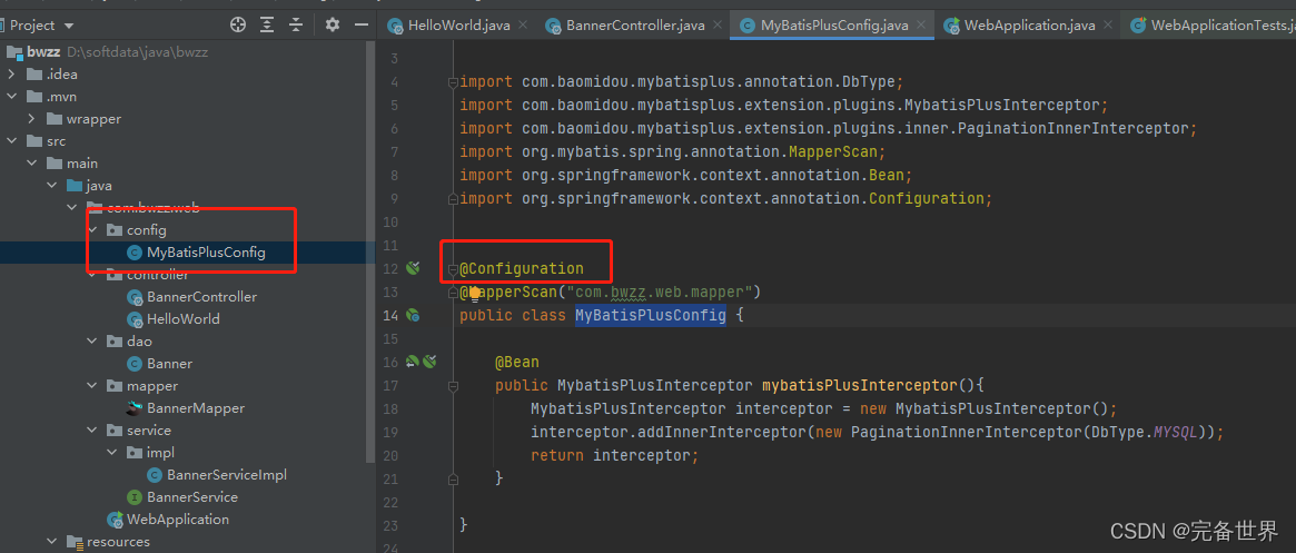 光看这么第一段代码无从下手,于是我在网上搜索了PaginationInterceptor 怎么配置。