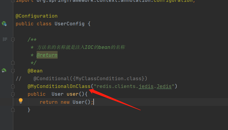需求:如果导入了jedis,则初始化User这个Bean到IOC容器,否则不加载