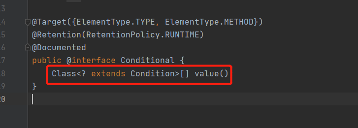 我们进入到@Conditional的源码,发现它的参数是Condition数组  再进入Condition,发现它是一个接口,有一个matchers方法(匹配)  按照这个要求,我们自己定义一个condition,返回true/false。也就是说,我们可以根据自定义的condition返回的boolean值来决定是否加载user,剩下的问题就回归到如何确定jedis是否存在了(java反射可以知道是否包含某个类Class.forName)。