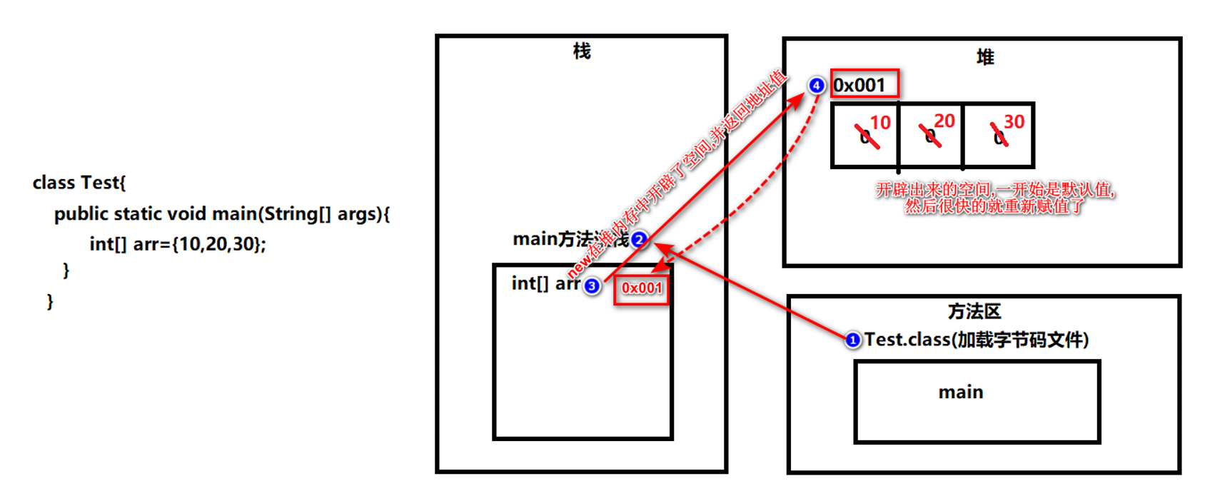 如下图中的内存图!数组的地址值返回到了栈内!对其堆内的值进行修改需要找到地址值,然后进行修改!所以是完全的修改掉了!