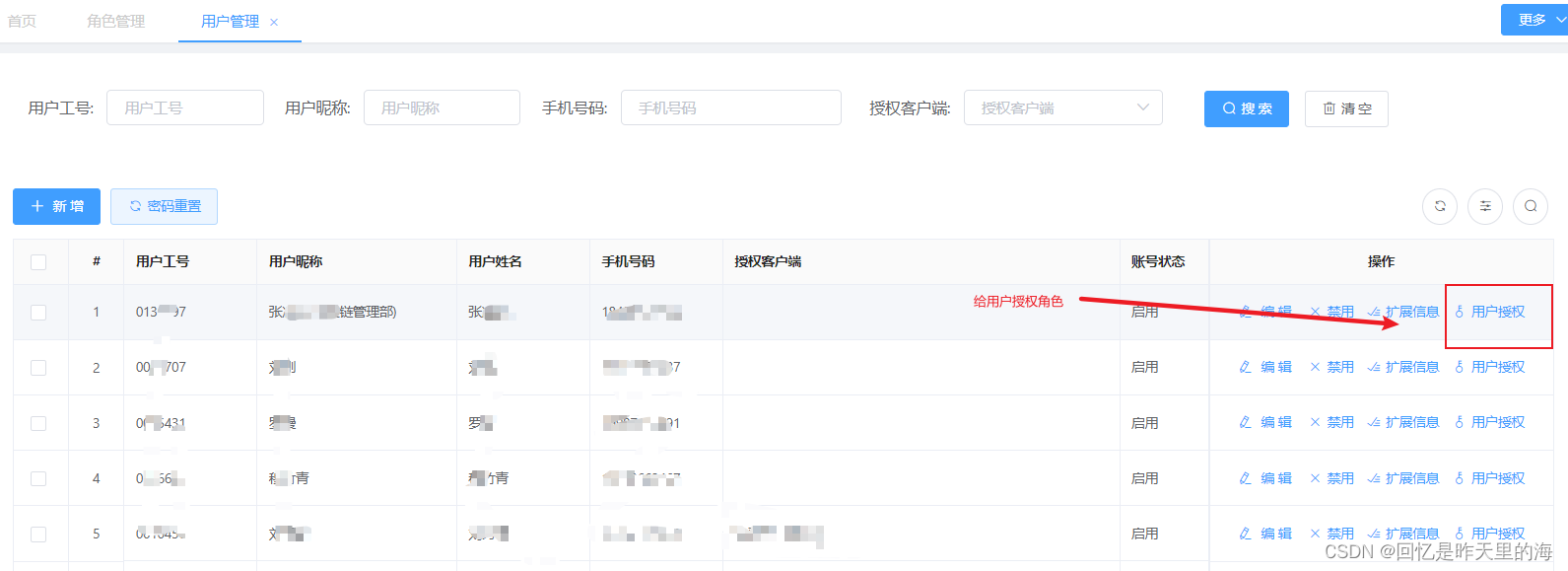 登录后台系统,具体权限的控制分别是菜单级别、菜单(页面)中的按钮和具体页面中的数据,即登录的用户能看到哪些菜单(页面),能看到页面中的哪些按钮(一些新增、删除按钮因为安全因素会对一些用户隐藏),能看到页面中的哪些数据,即能不能看到其他人创建或与之有关的数据