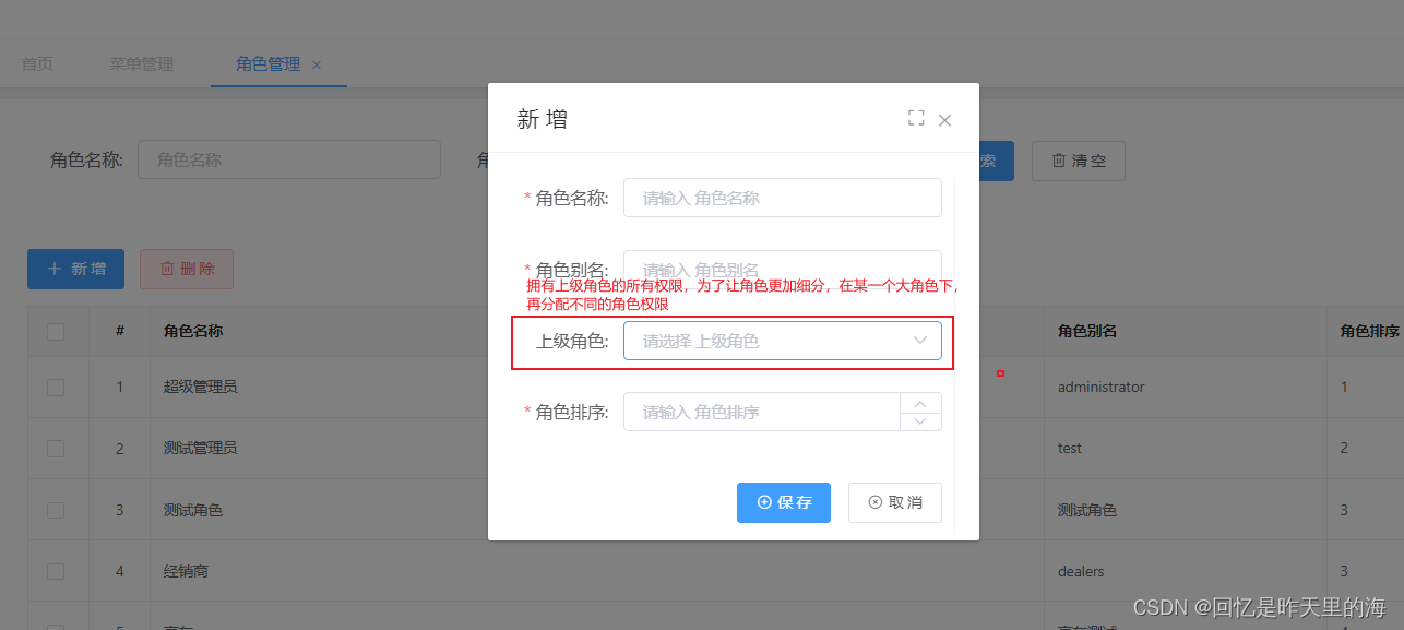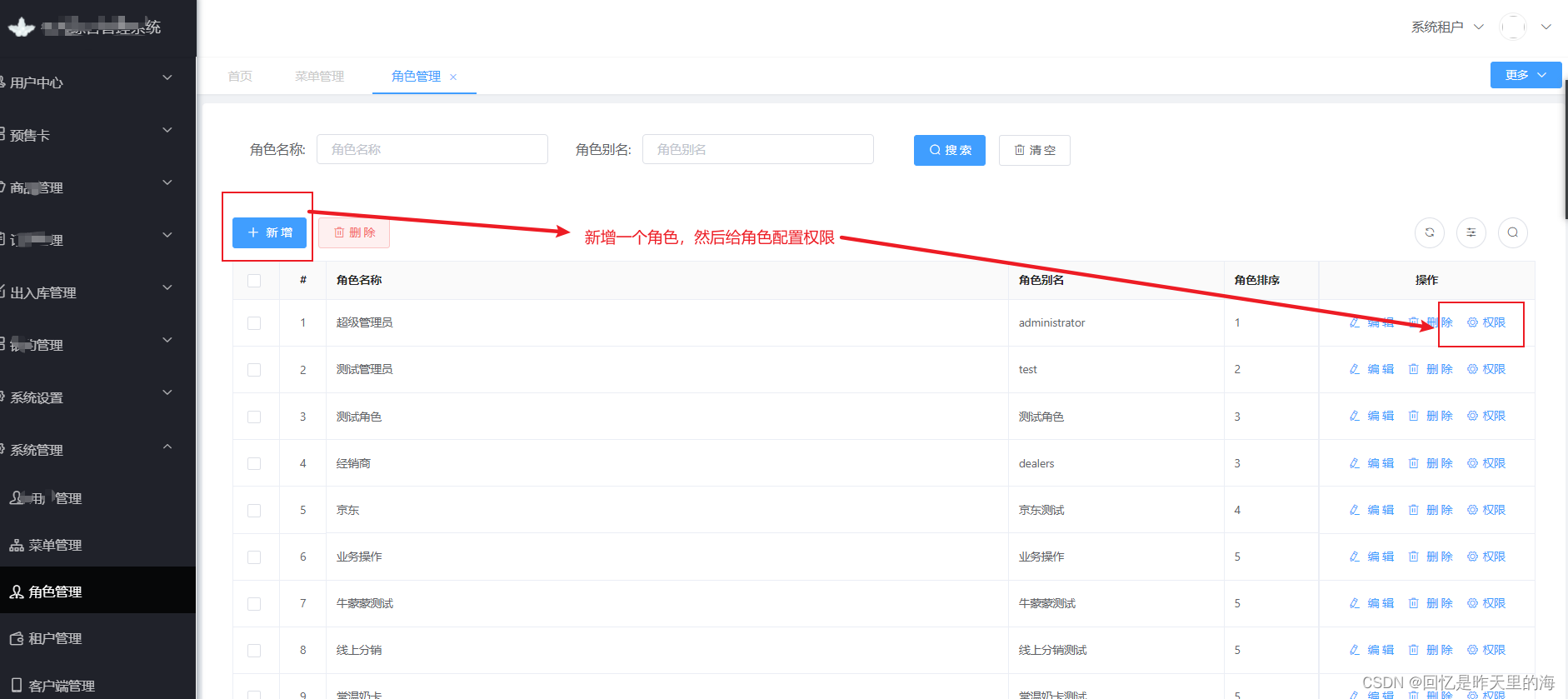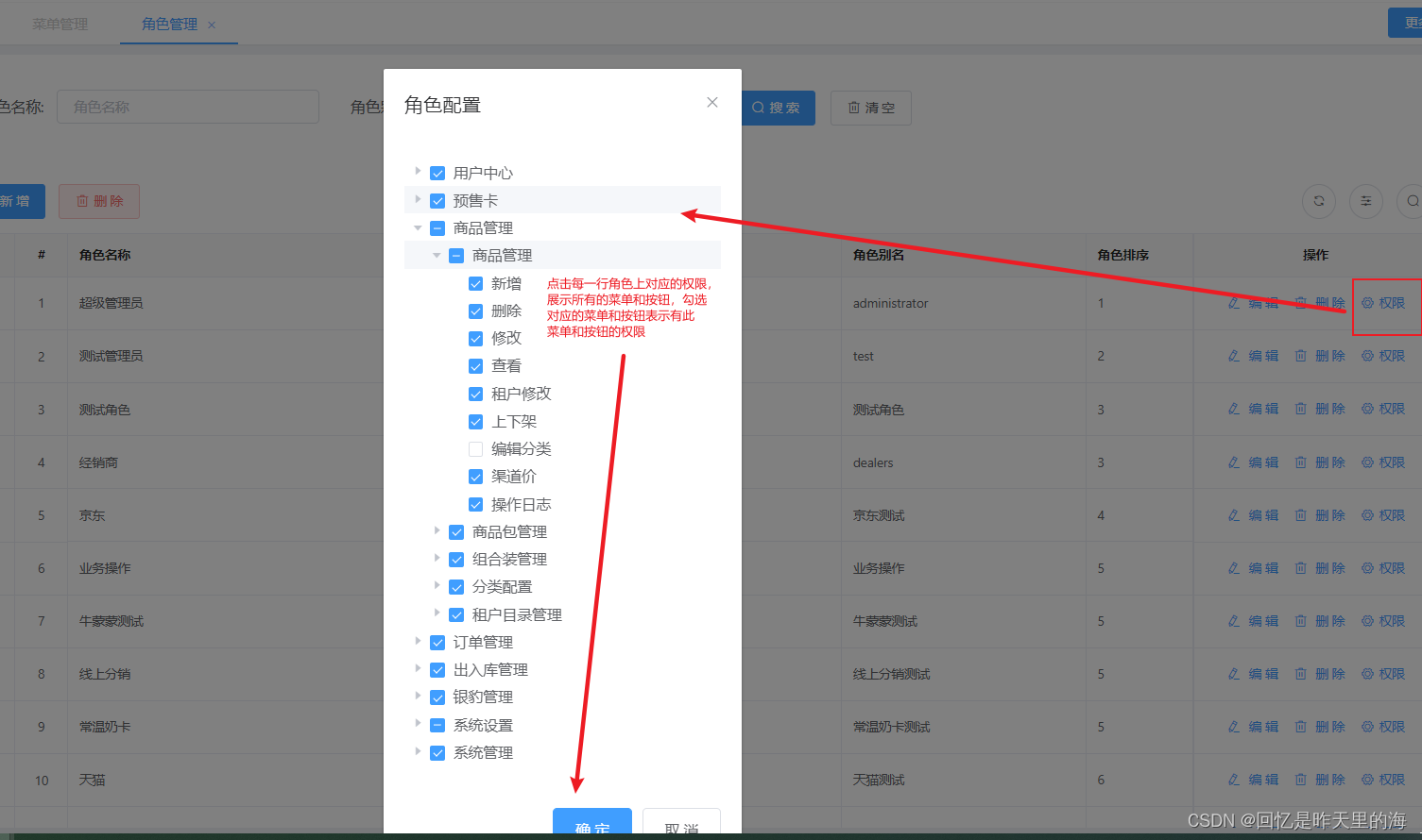 2.设置角色管理,即每种角色对应不同的菜单和按钮权限