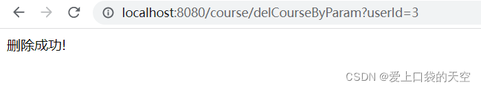 ? ? ? ? 路径:http://localhost:8080/course/delCourseByParam?userId=3