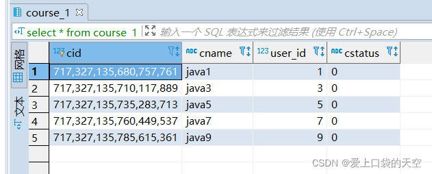 1、首先调用新增接口,向course_0和course_1中插入数据