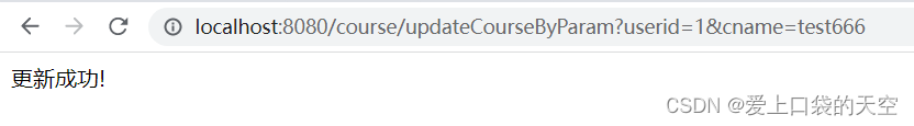 ? ? ? ? 路径:http://localhost:8080/course/updateCourseByParam?userid=1&cname=test666