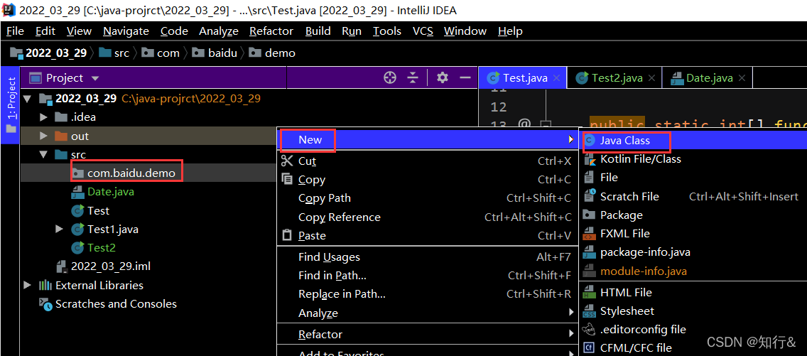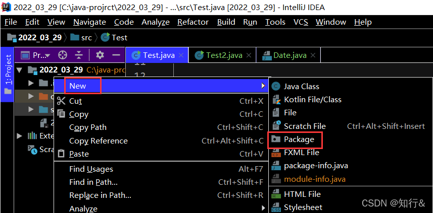 1. 在 IDEA 中先新建一个包: 右键 src -> 新建 -> 包;