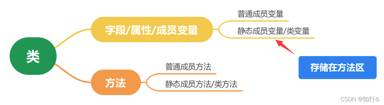 1. 不属于某个具体的对象,是类的属性,所有对象共享的,不存储在某个对象的空间中; 2. 既可以通过对象访问,也可以通过类名访问,但一般更推荐使用类名访问; 3. 类变量存储在方法区当中; 4. 生命周期伴随类的一生(即:随类的加载而创建,随类的卸载而销毁)。