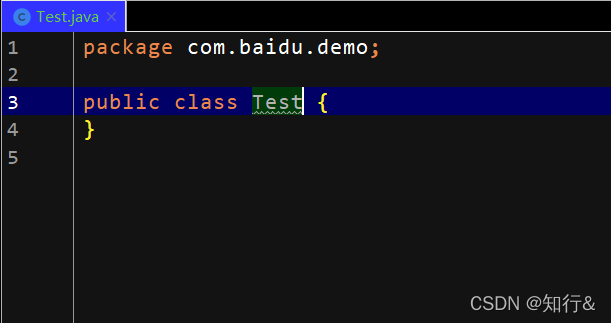 ?5. 同时我们也看到了, 在新创建的 Test.java 文件的最上方, 就出现了一个 package 语句。