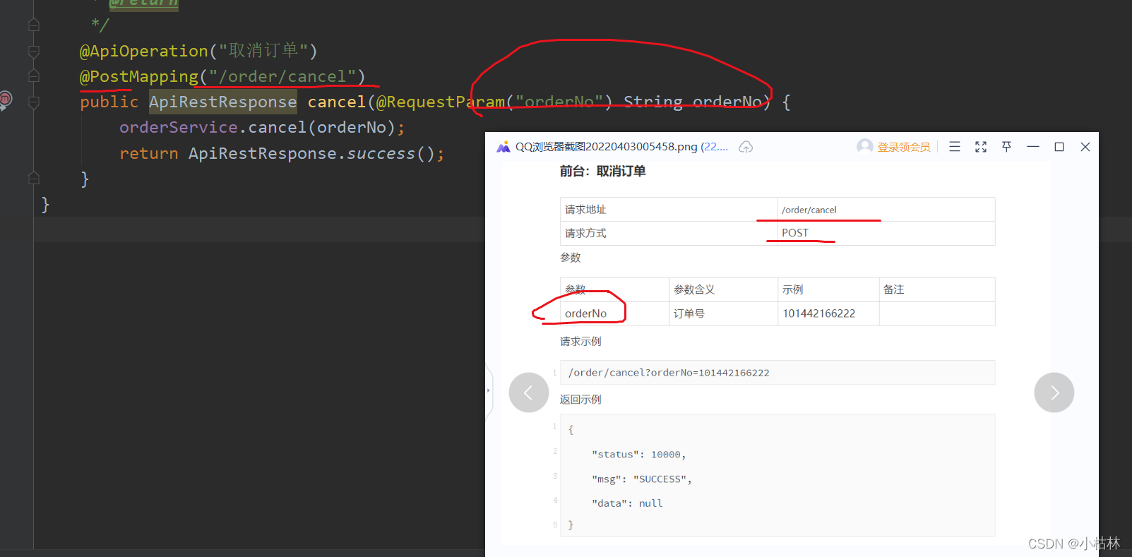 (2)这个接口比较简单,只是别忘了,我们在实际取消前,需要订单检查与权限校验;