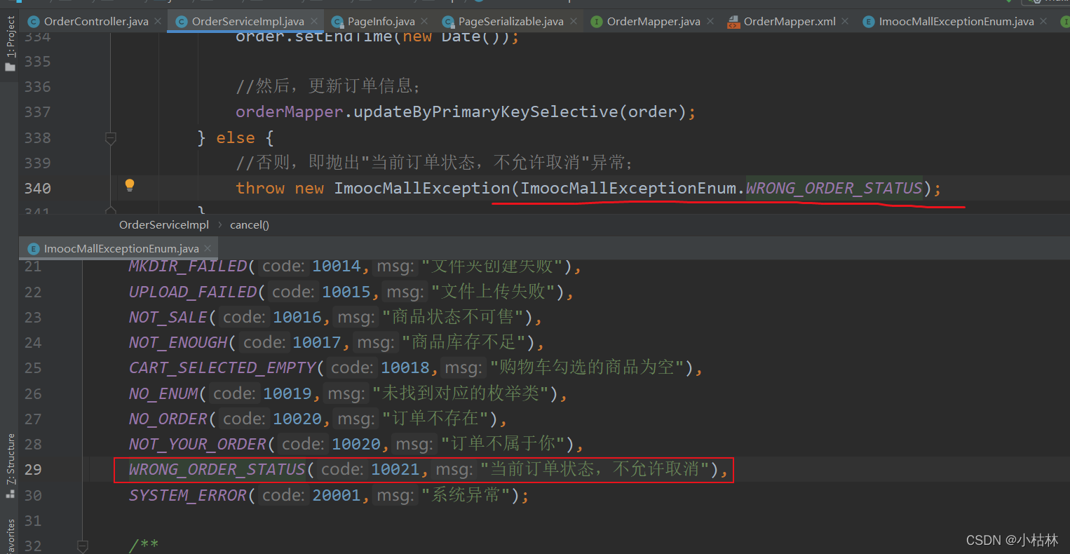 throw new ImoocMallException(ImoocMallExceptionEnum.WRONG_ORDER_STATUS);
