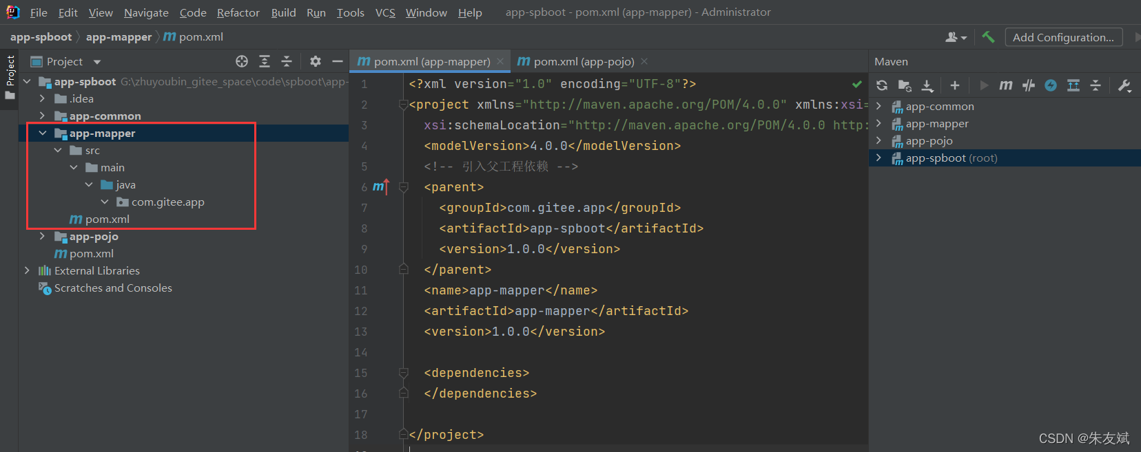 app-mapper:dao接口模块,专门存放操作数据库的dao接口。