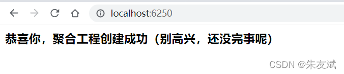 return "<h3>恭喜你,聚合工程创建成功(别高兴,还没完事呢)</h3>";