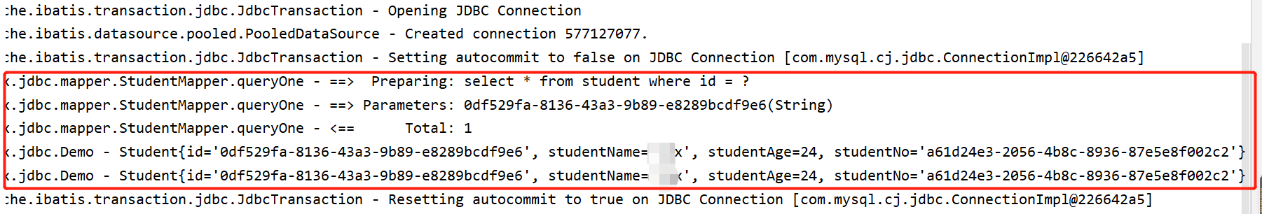 Student student = mapper.queryOne("0df529fa-8136-43a3-9b89-e8289bcdf9e6");