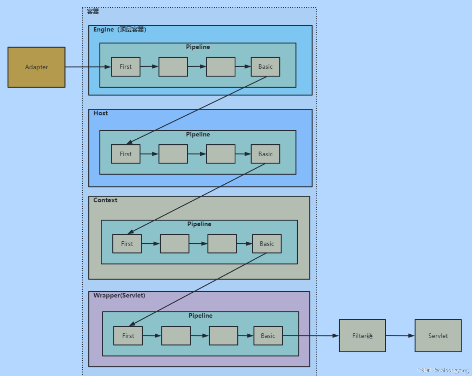 在基类ContainerBase中构建一个Pipeline数组作为责任链