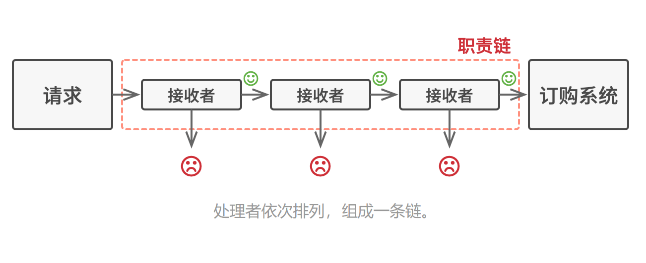 责任链是一种行为设计模式,允许你将请求沿着处理者链进行发送。收到请求后,每个处理者均可对请求进行处理,或将其传递给链上的下个处理者。