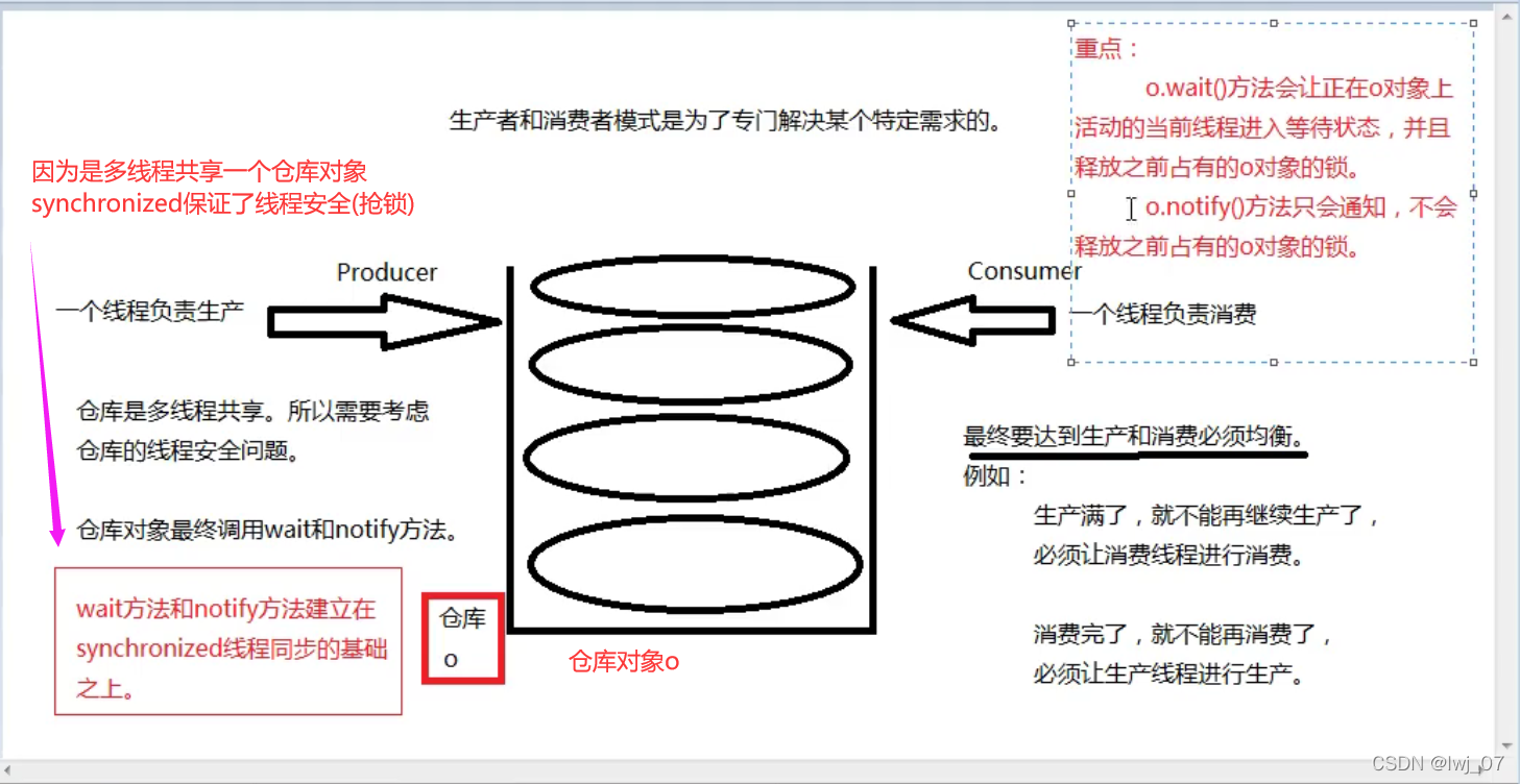 // 也有可能释放掉后生产者又抢到了对象锁, 但即使生产者又抢到了对象锁 仓库已经满了 生产者还是只能释放对象锁