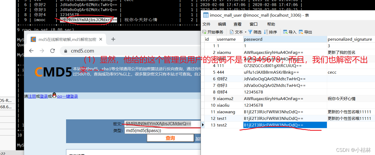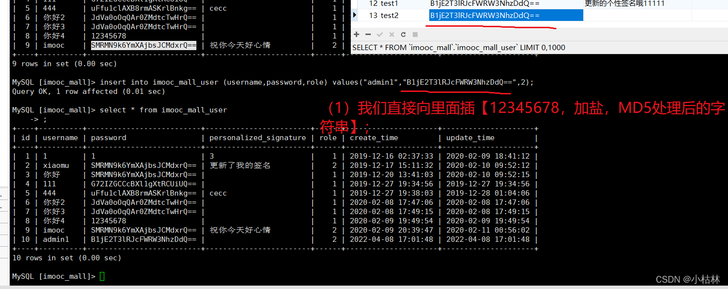 所以,为了能够登录系统,自己向user表中,插入了一个密码是12345678的管理员用户;