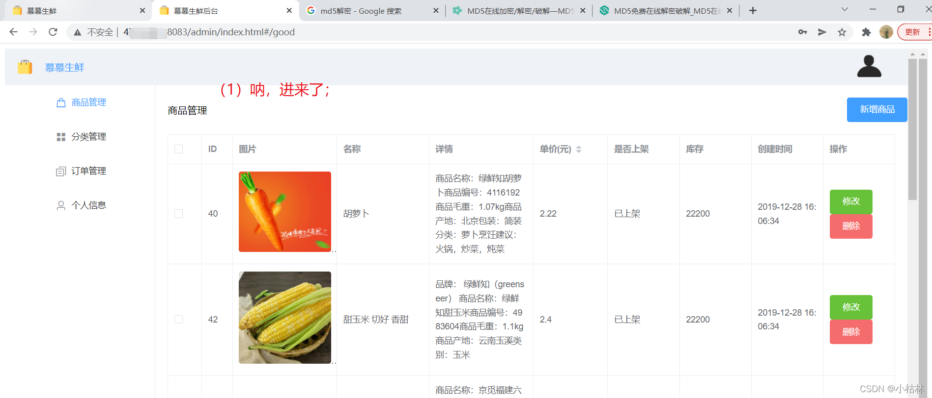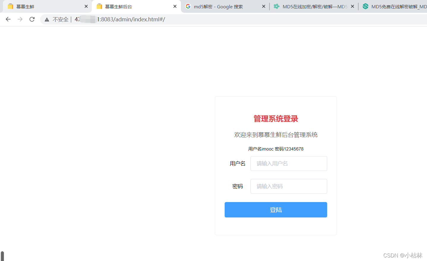 这样一来,我们就可以使用:admin,12345678登录后台系统了;