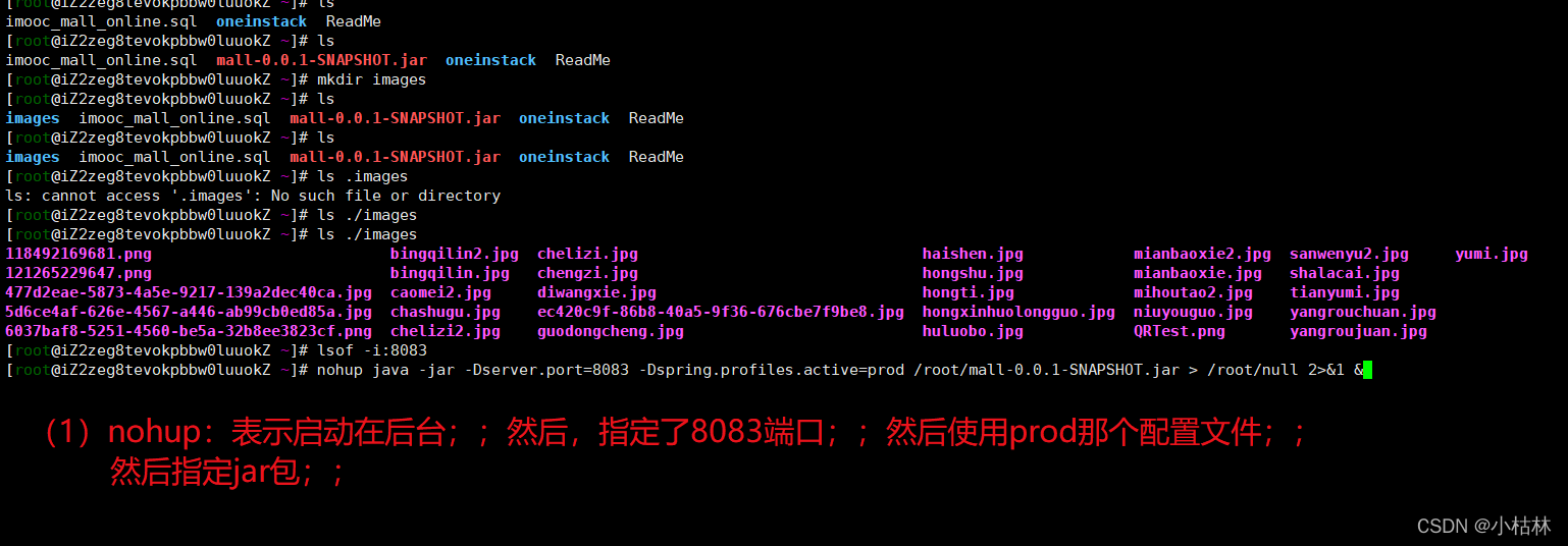 nohup java -jar -Dserver.port=8083 -Dspring.profiles.active=prod /root/mall-0.0.1-SNAPSHOT.jar > /root/null 2>&1 &