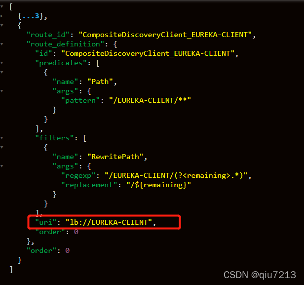 可以看到?spring cloud gateway自动根据服务发现为每一个服务创建了一个router,这个router将以服务名开头的请求路径转发到对应的服务。