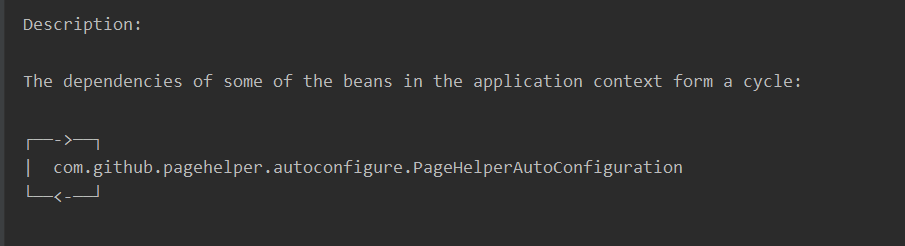 The dependencies of some of the beans in the application context form a cycle:com.github.pagehelper.autoconfigure.PageHelperAutoConfiguration  出现这种报错是由于springboot的版本和pagehelp的版本不匹配相互冲突