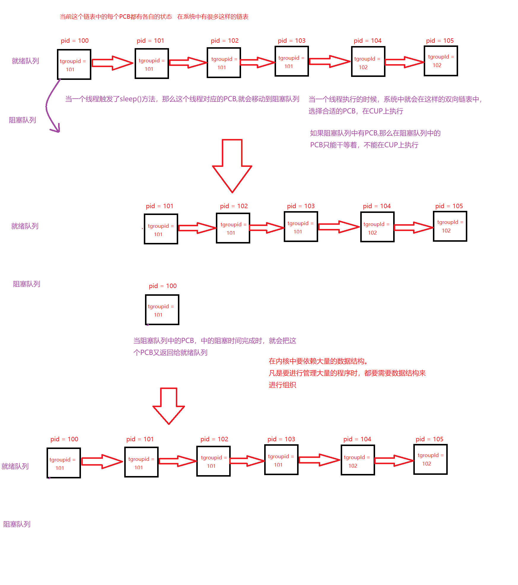 回顾之前的学习内容,我们知道我们使用PCB描述一个进程,使用双向链表来组织进程。这种说法是针对一个进程中只有一个线程的情况下。