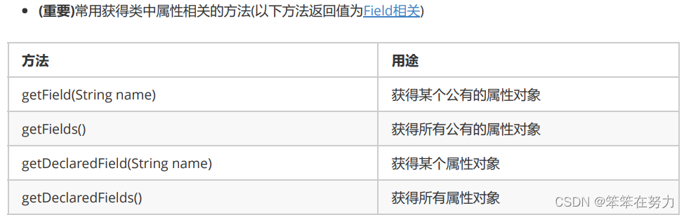?(2)getDelaredFields()方法,仅能拿到当前类的所有属性(包含private属性)