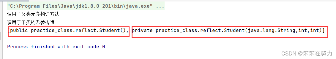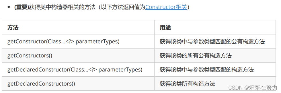 可以得到:要得到指定的某个构造方法,可以用getDeclaredConstructor(参数类型.class…)方法,小括号内就是指定构造方法的类型.class;