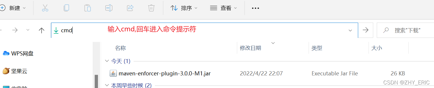 ? ? ? ? 进入下载的jar包所在的路径。在上方路径栏输入cmd,进入模式。