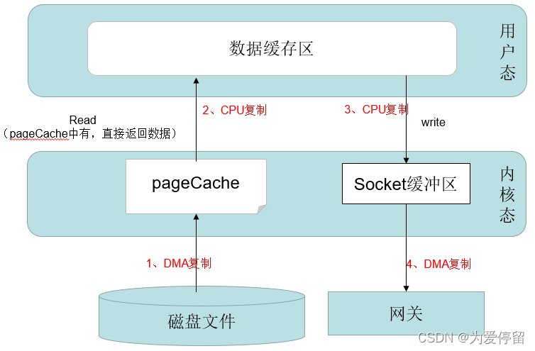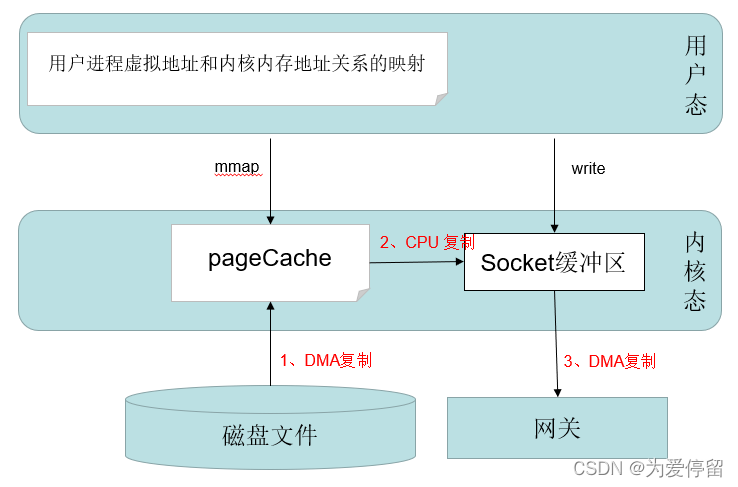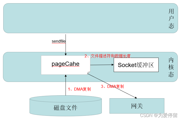 5、sendfile:可以把pageCache中的数据直接发给网关/磁盘文件,即两个文件描述符之间可以直接进行数据复制,实现了真正的零拷贝