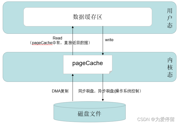 2、pageCache:就是一个高速缓冲区,缓存IO(大部分IO操作都是缓存IO)中用户态和内核态之间的一个桥梁