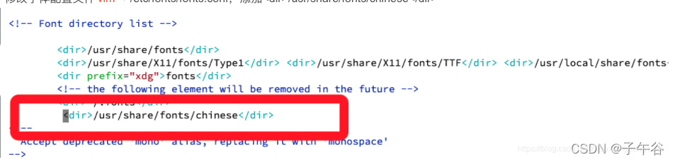 4.修改字体配置文件vim?/etc/fonts/fonts.conf,添加<dir>/usr/share/fonts/chinese</dir>
