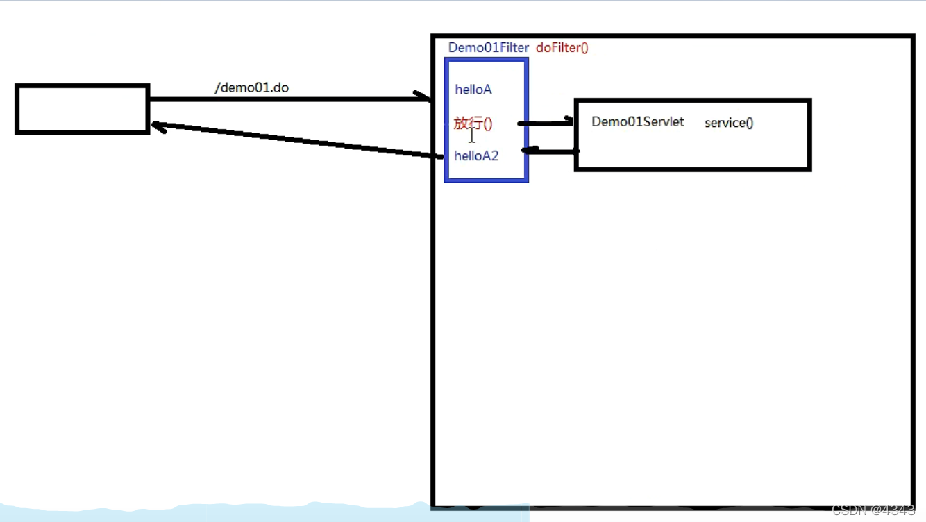 //表示放行 这句话之上是请求发过来的时候没有到servlet之前需要执行的