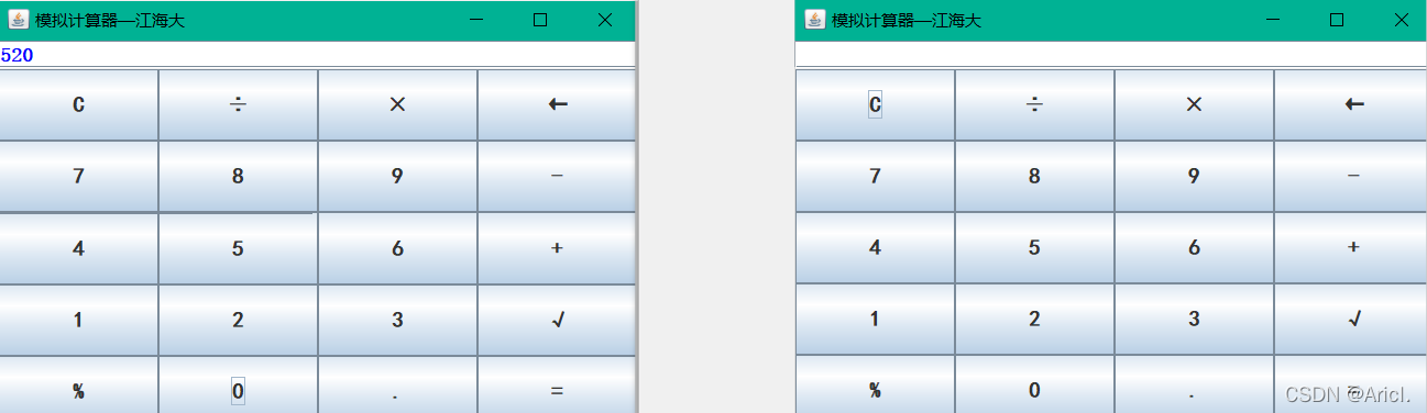 ????????按钮“C”清空文本框的实现:调用文本框对象的成员方法setText(""),将其重置为空串即可