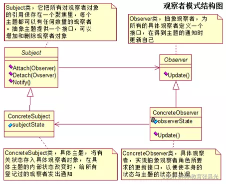 ?? 抽象观察者角色:为所有的具体观察者定义一个接口,在得到主题通知时更新自己。