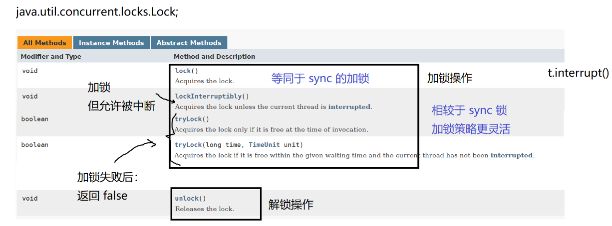 这个案例和上一个的区别就是尝试让子线程停止,子线程用的是一个允许被中断的锁,这里再调用interrupt()方法就会以一个异常的形式来处理