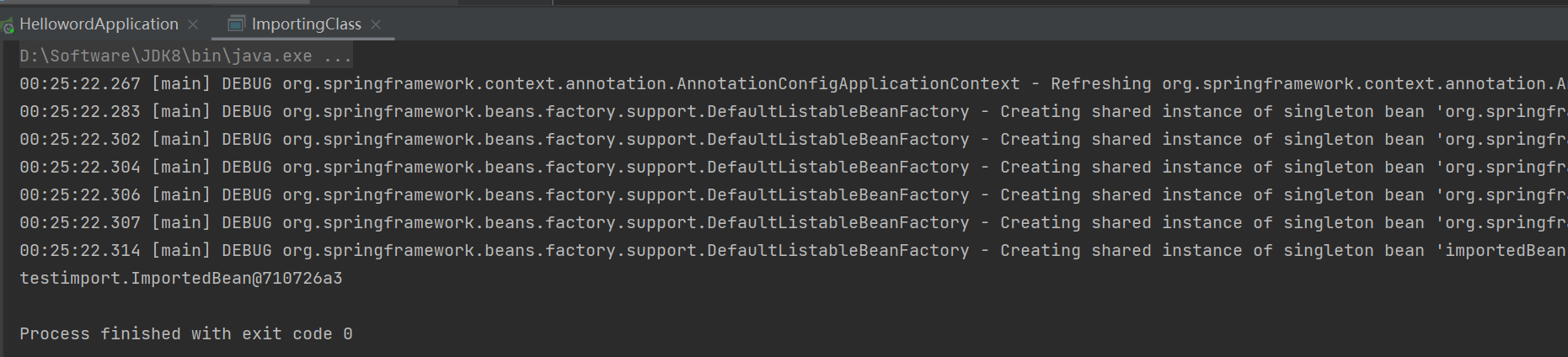 - 创建配置类,并加上@Import注解引入ImportedBean,在main中获取ImportedBean