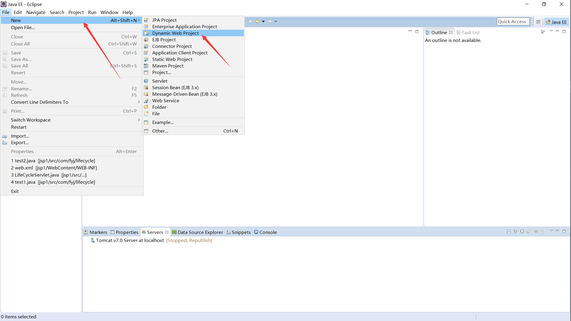 打开eclipse后先进行servers的配置,即把tomcat导入.