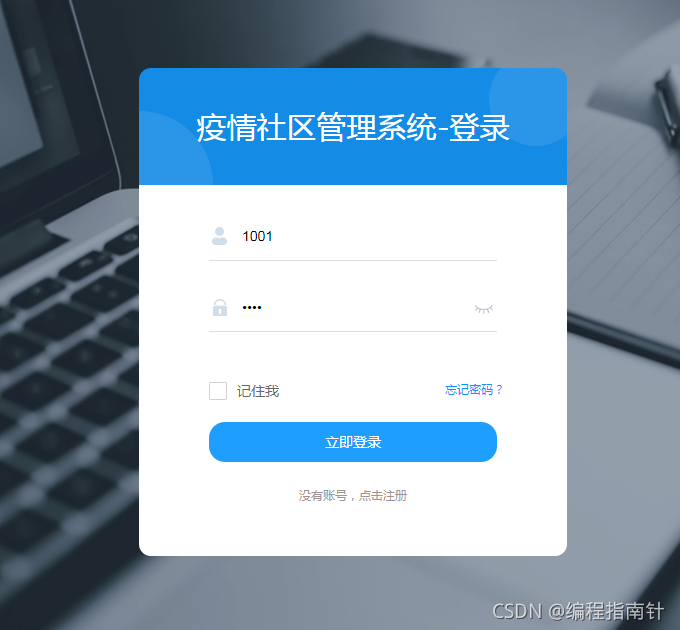 整个软件系统的开发从最初的需求分析,概要设计到详细设计,都是为系统的最终实现来做准备工作的,可以说系统实现部分是我们目前最终的一个成果。系统实现部分主要是介绍一下疫情社区管理系统的部分核心功能模块的实现,包含前端UI界面的实现以及各模块的核心代码实现,并对各个核心模块做一下具体的业务功能介绍,让我们对整个系统主要完成的核心功能实现有一个基本的了解。
