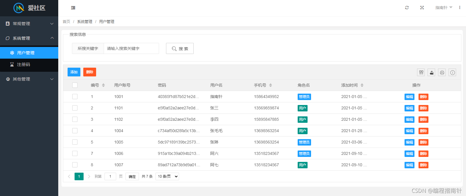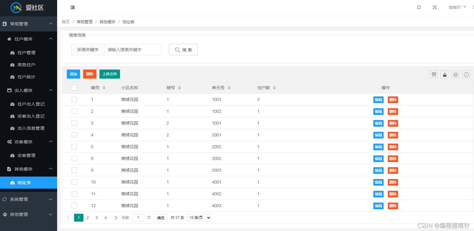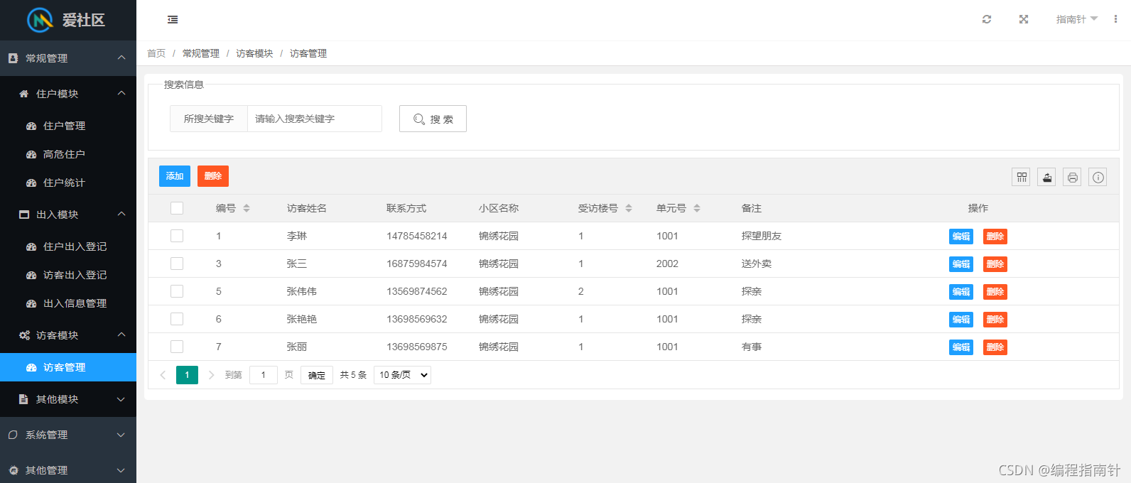 以上是展示的疫情期间社区对人口流动的管理系统的部分基本功能,项目功能完整,页面简洁