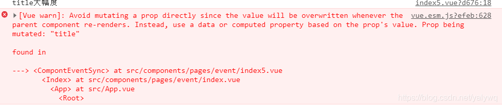 ?可在子组件中通过this.$emit("update:title", value) 通知父组件更新值,不可直接修改props的值
