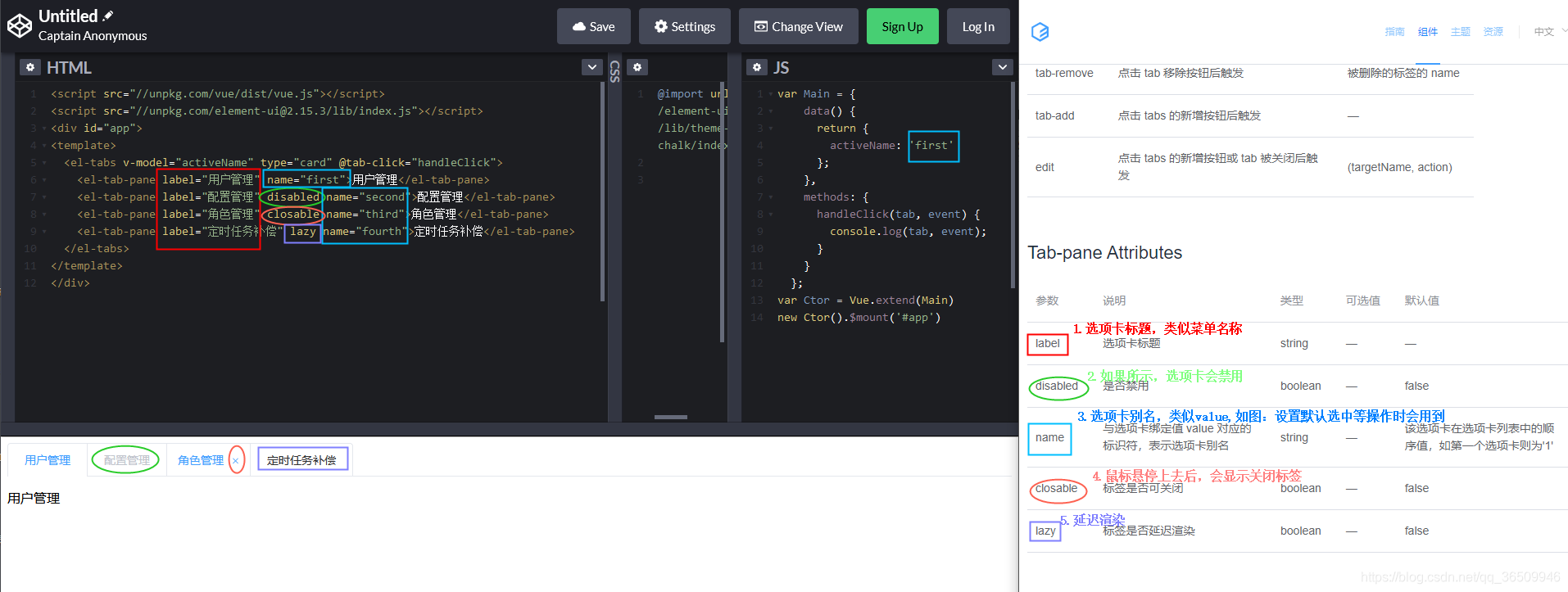 ?????????首先参考官网地址:https://element.eleme.cn/#/zh-CN/component/tabs,如果下面文章中,有什么不懂的地方,可以自行前往官网学习,因为下面这边文章就是在官网的基础上写的。
