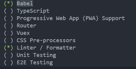 ?第一个是默认的配置,第二个是手动配置,个人选择手动的,之后会出现若干个选择,通过空格来取消和确认: