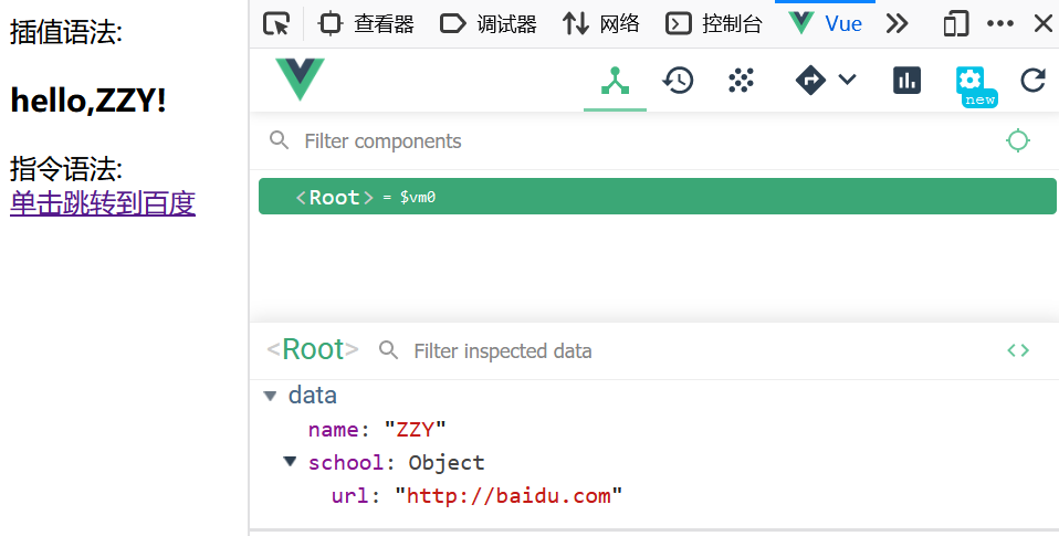 指令语法: <br><a v-bind:href="school.url">单击跳转到百度</a>