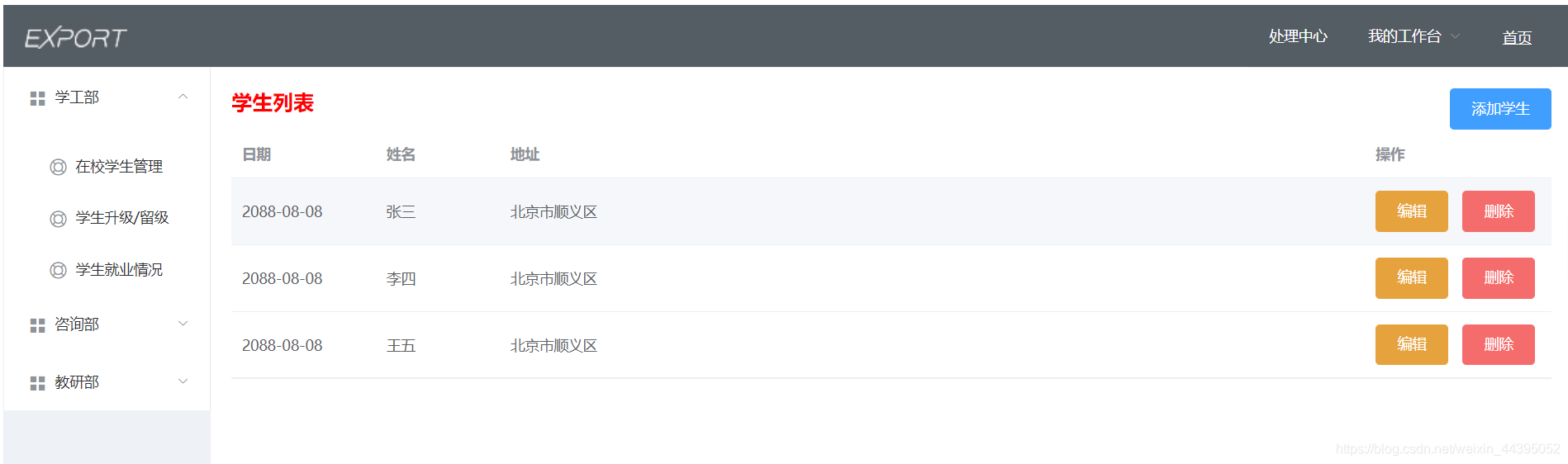 今天学习了elementUI和vue,做了一个简单的学生列表界面。