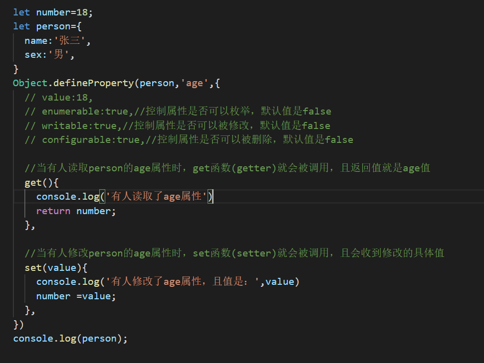 //当有人读取person的age属性时,get函数(getter)就会被调用,且返回值就是age值