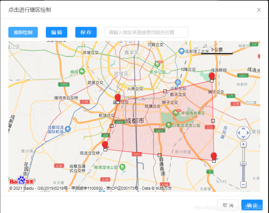 <a-button type="primary" @click="toggle('polygonPath')">{{ polygonPath.editing ? '重新绘制' : '开始绘制' }}</a-button>