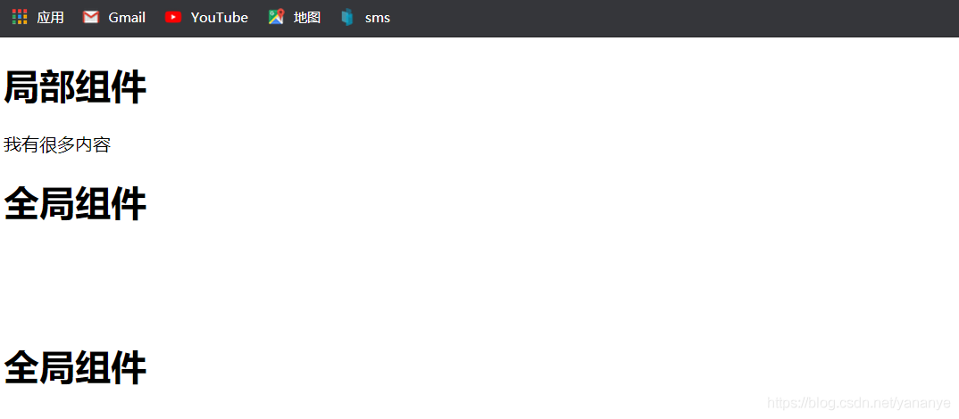 结果  局部组件 说明: 1.局部组件必须在某个Vue对象中声明 2.组件内容中 有且只有 1个根标签,包裹其他内容 3.template标签是Vue提供的一个标签,必须声明template标签来定义组件内容  示例