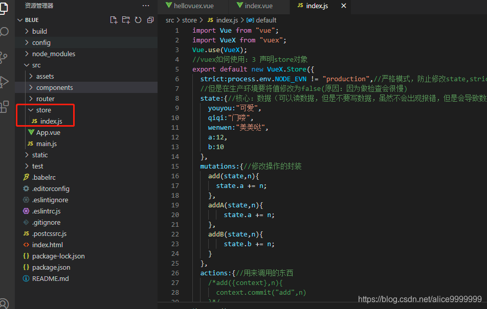 (1)封装Vuex,一般会在src文件夹下新建一个名为store的文件夹,在此文件夹下新建一个index.js(新版本的创建项目的时候会自动生成)