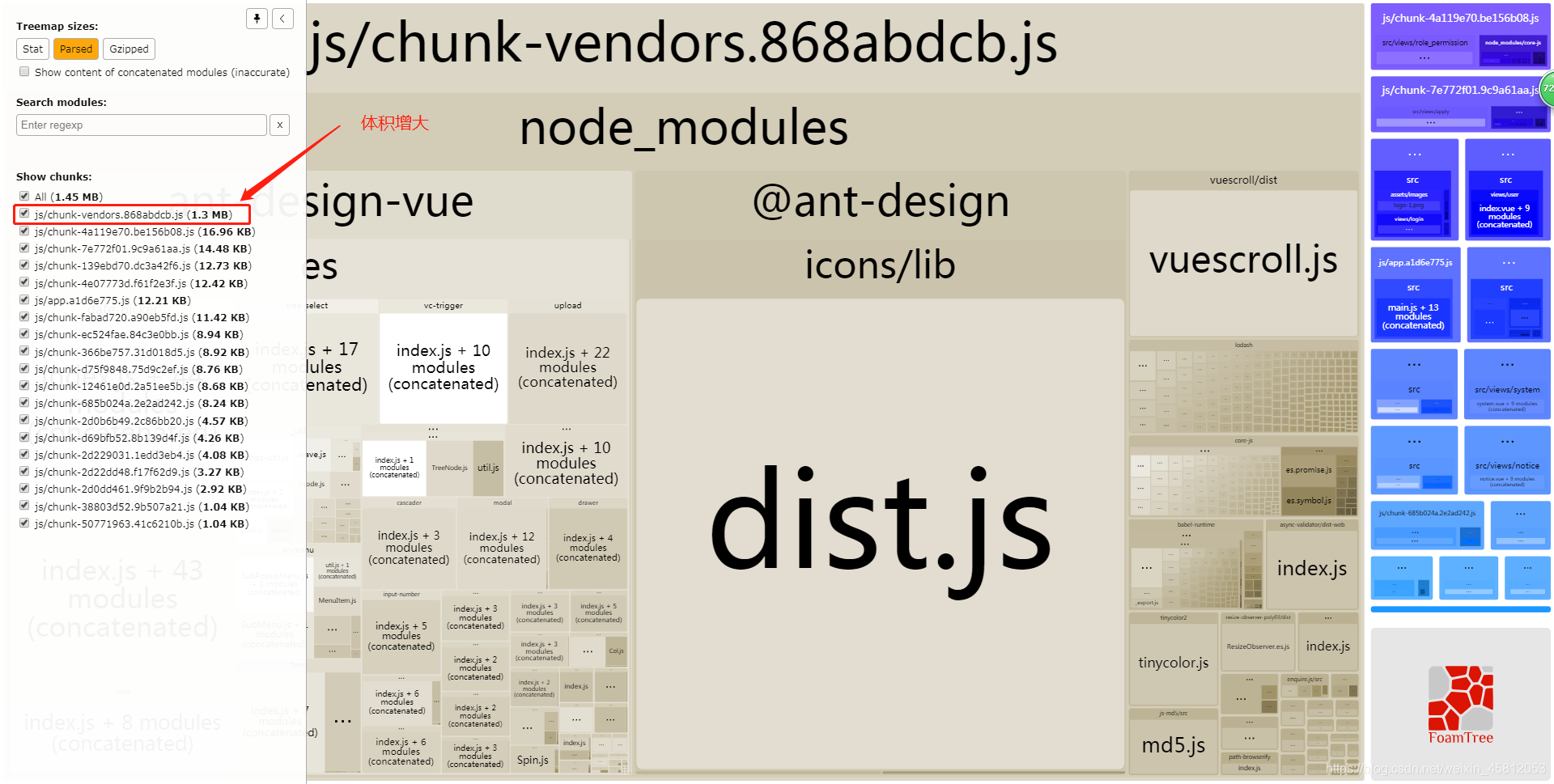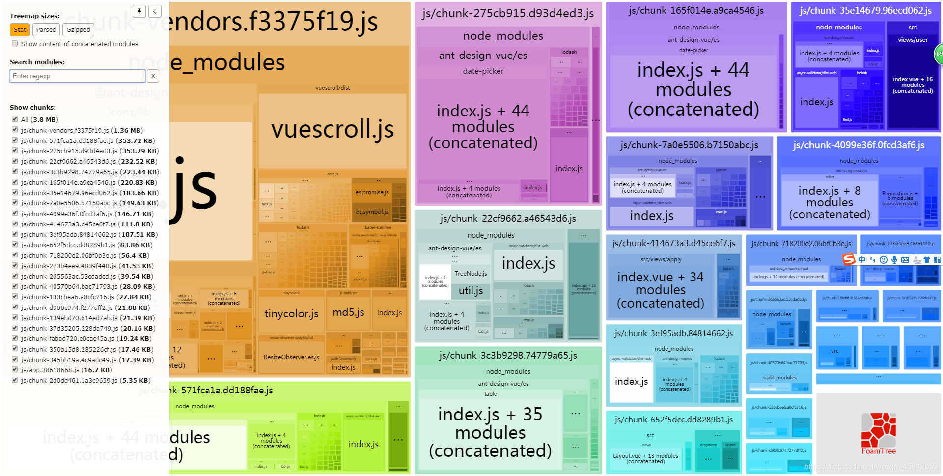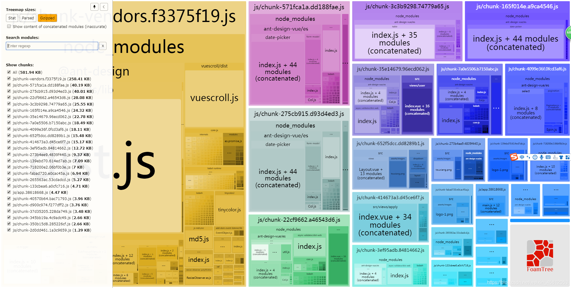 | 单.vue文件按需引入antd | vue.use 按需引入antd 组件 | stat | 3.8MB | 2.86MB | parsed | 1.81MB | 1.45MB | gzip | 581.94kb | 463.39kb | 区别 | 单个文件体积大,全局文件小,总体积大 | 单个文件体积小,全局文件大,总体积小 |